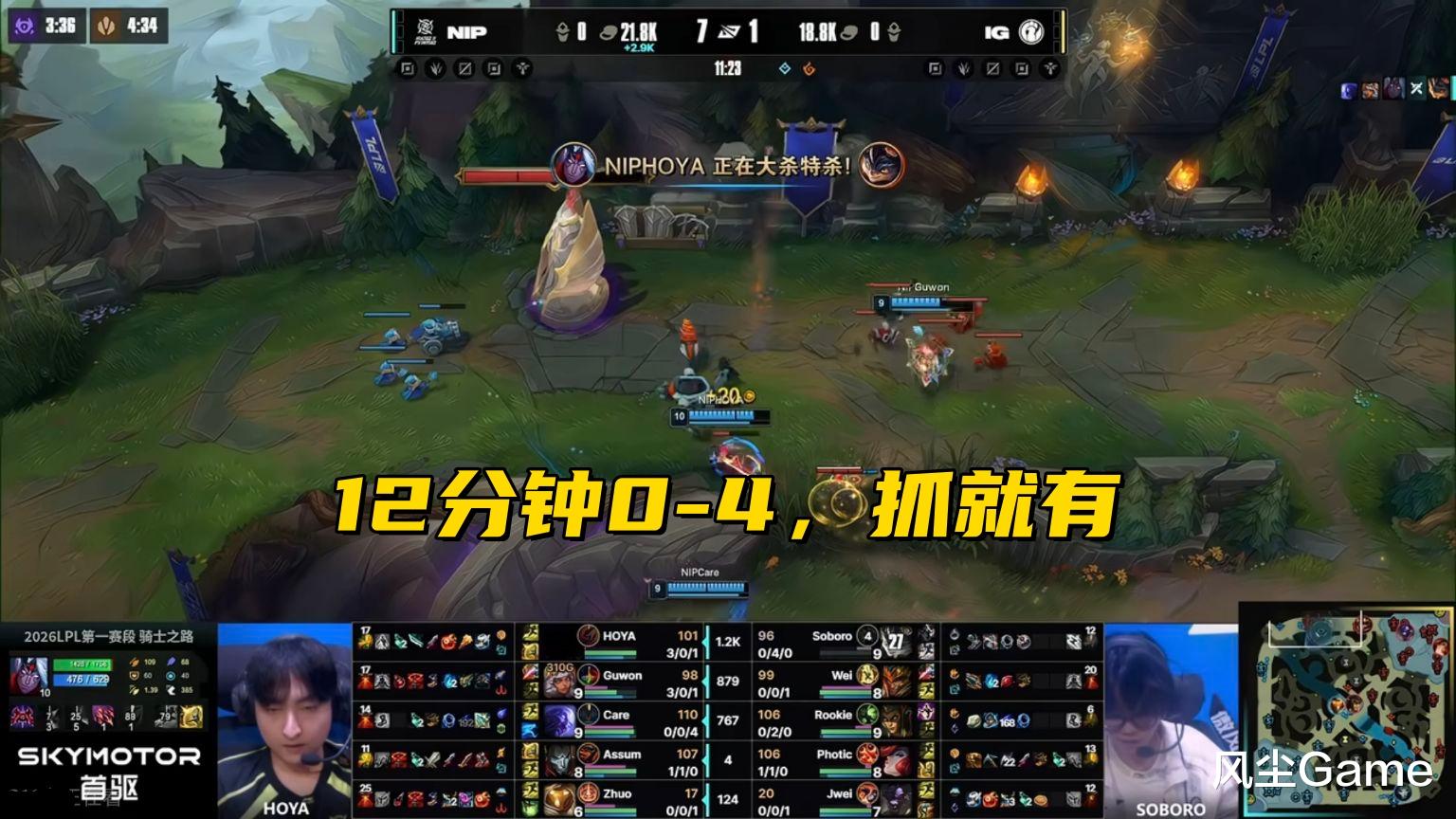 这场比赛虽然很下饭,但滔搏好歹也是进季后赛了,期待他们后续的比赛吧,同一天的另一场对局,是IG大战NIP,这场比赛开打之前,很多人还觉得IG能赢,结果NIP发力了,只打四局就3:1赢下比赛,拿到第6张季后赛门票,IG上单选手Soboro,这场BO5的表现,只能用逆天来形容。