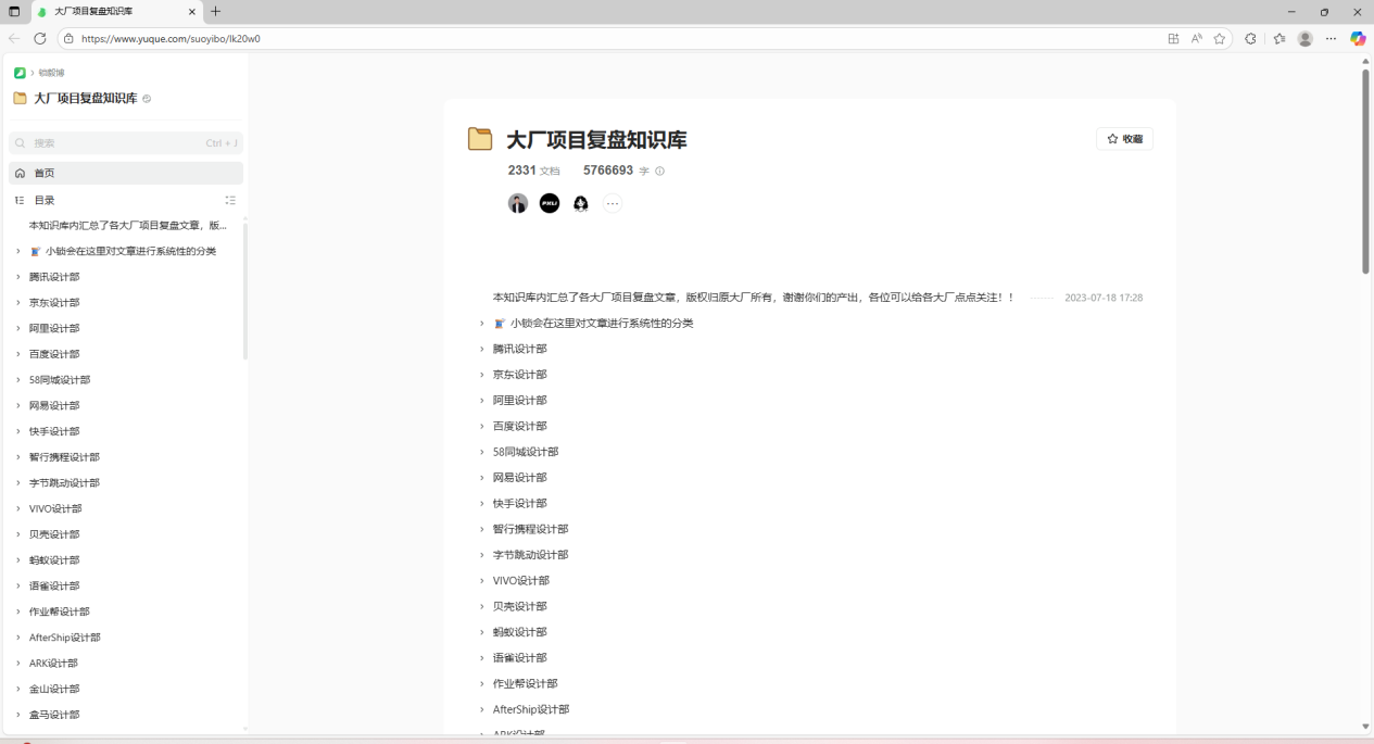 8、大厂项目复盘知识库这是一个收录了各大互联网公司真实项目复盘的知识库,里面汇总了阿里、腾讯、字节跳动、京东等互联网巨头的2200多篇实操经验,共计560多万字,涵盖产品、设计、运营、技术和数据分析等全领域干货。