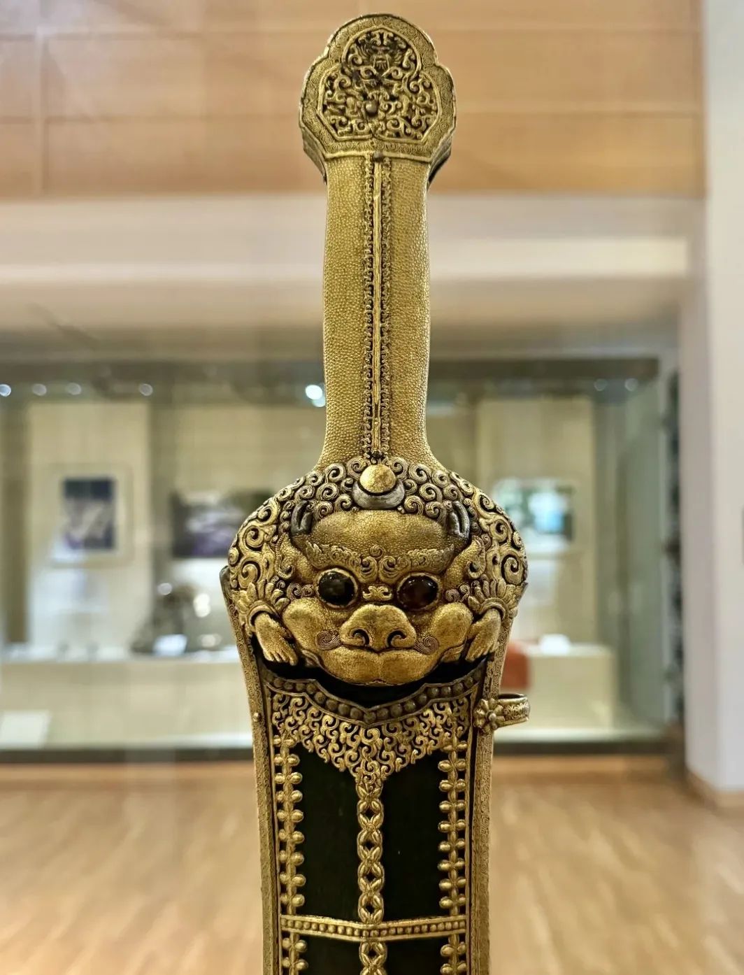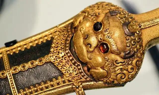 剑鞘上的雄狮浮雕、火焰纹饰等工艺精美,融合了汉藏文化元素,代表15世纪初刀剑工艺的巅峰