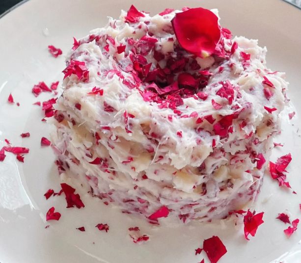 接下来便是赋予其玫瑰的灵魂,通常选用可食用的干玫瑰花,取下花瓣,将部分花瓣轻轻揉碎,与少许蜂蜜或玫瑰酱一同拌入山药泥中。玫瑰的馥郁香气便会丝丝渗入。如果希望色彩更富层次,也可以用少许红心火龙果汁或红曲粉进行少量调色,让山药泥呈现浅浅的、自然的粉红色,但切记宁少勿多,以保持雅致。