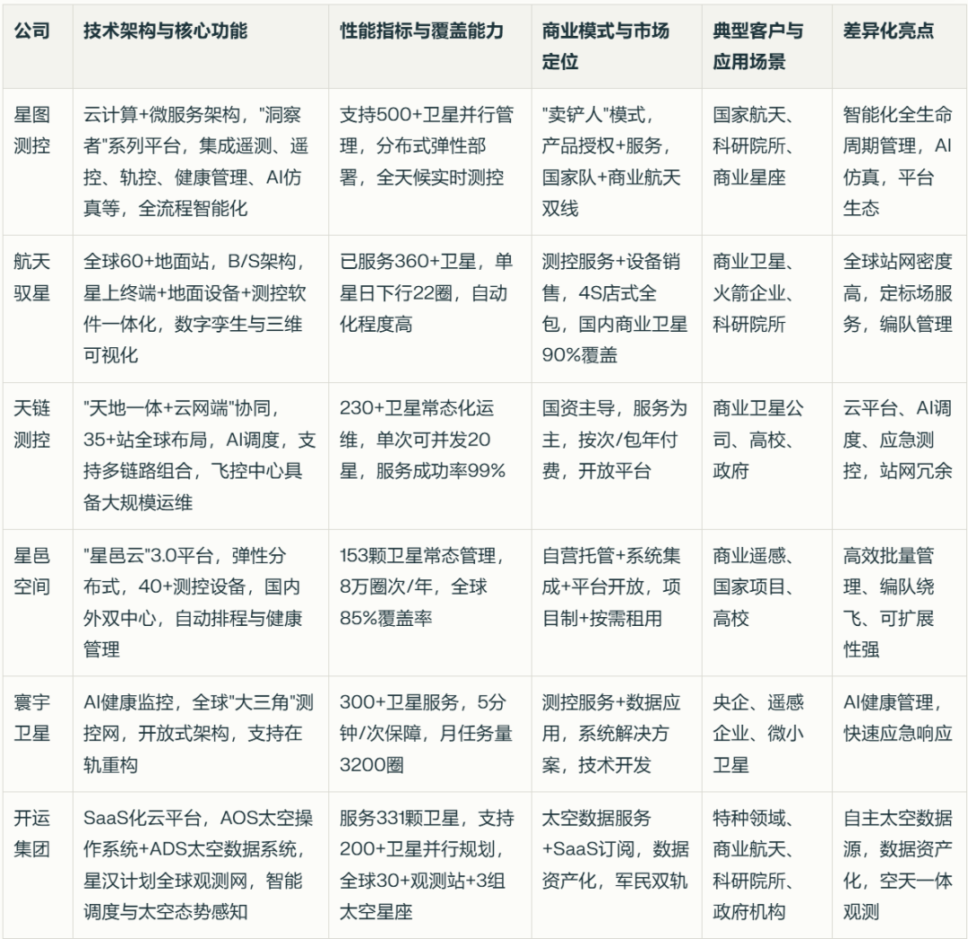星图测控:强调天地一体化、智能化测运控,融合大数据与AI,支持多星多站智能调度,具备太空态势感知增值服务。