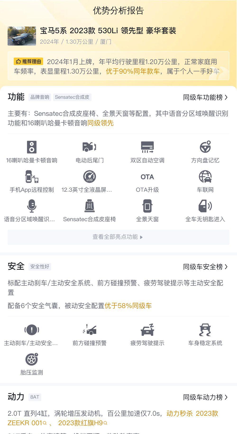 然后,我们来看看这辆车本身。2024年1月上牌,0过户,2023款530Li领先型豪华套装,听着就挺高大上是不是?2.0T的发动机,245匹马力,百公里加速7秒,这些数据对于一个汽车小白来说,可能感觉云里雾里,但对于懂车的人来说,这就是赤裸裸的诱惑啊!想象一下,一脚油门下去,那推背感,简直不要太爽!另外,这车还有8AT变速箱和后驱系统,操控性更好,驾驶乐趣更足。空间方面也不用担心,5米多长的车身,近两米的车宽,三米多的轴距,乘坐空间那是相当宽裕,后排跷二郎腿都没问题。配置方面,虽然算不上顶尖,但全景天窗、液晶仪表盘,舒适性配置也都齐全,日常使用绝对够用。