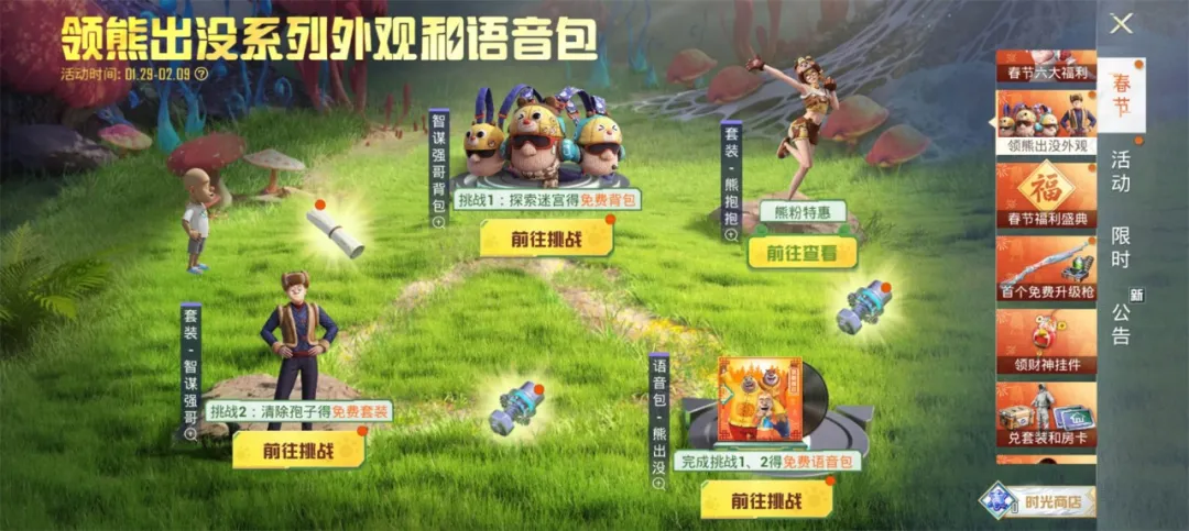 在辐射泛玩家群体方面,《和平精英》在春节期间也是动作不断。比如游戏与《熊出没》联动推出了系列外观与语音包(活动持续至2月9日)。这一联动唤起的不仅是从小看着《熊出没》长大的玩家的情怀童心,也精准击中了部分已经组建家庭带娃看片的大龄玩家群体,将他们重新召回到了游戏之中。