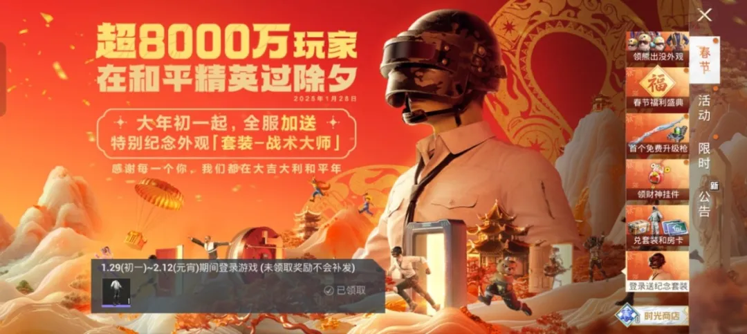 春节这样的节日节点往往是游戏寻求破圈的绝佳机会。今年的《和平精英》显然又一次抓住了这个机会,实现了最大范围的用户辐射。