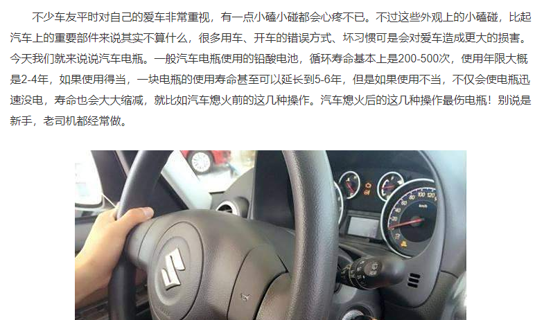 当然,我们买车是用来享受的,而不是供起来,以上说的几点,不经常做对电瓶的损害确实不大,关键还是要合理用车,熄火后不要长时间使用电瓶。另外如果车子需要长时间停放,电瓶得不到充电,加上自放电的特性,很容易就亏电,所以我们最好每隔一周启动一次车子。汽车的寿命是半固定的,你注意保养它,它的寿命就会相对长一些,反之会减少寿命!所以希望大家以后要正确的使用汽车。