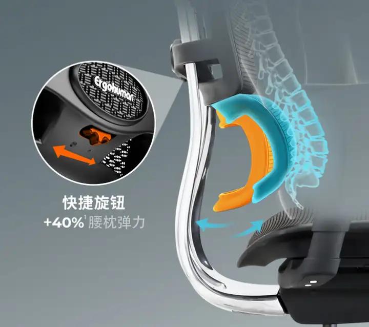 很多椅子腰靠就是个摆设,位置不对反而顶得难受。真正好的支撑系统是“活”的——它能分成几个独立区域协同工作。当你后仰时,中间的支撑点会智能前移,稳稳托住快要悬空的腰;两侧的支撑翼则像双手一样,轻柔包裹住腰部肌肉。这种多分区动态贴合的设计,才能让腰椎在任何姿势下都得到科学支撑。