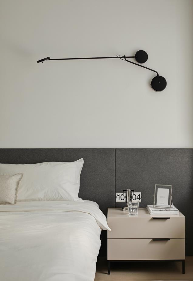 但是如果我们想要享受深色调带来的安静放松感,那么只需要将深灰布帘拉下来挡住窗外明亮的阳光,再加上深灰布帘和墙面等深色调的完美结合,就能够形成十分安静柔和、舒服放松眼神的氛围感了。