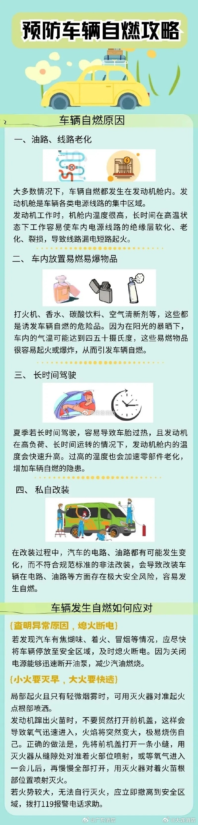 司机们该如何预防汽车自燃?万一车辆着火又该怎么处理?这份防范攻略请收好↓↓↓