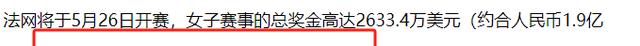 就拿这届法网来讲,其单打冠军可以拿到225万欧元,相当于1800万人民币。