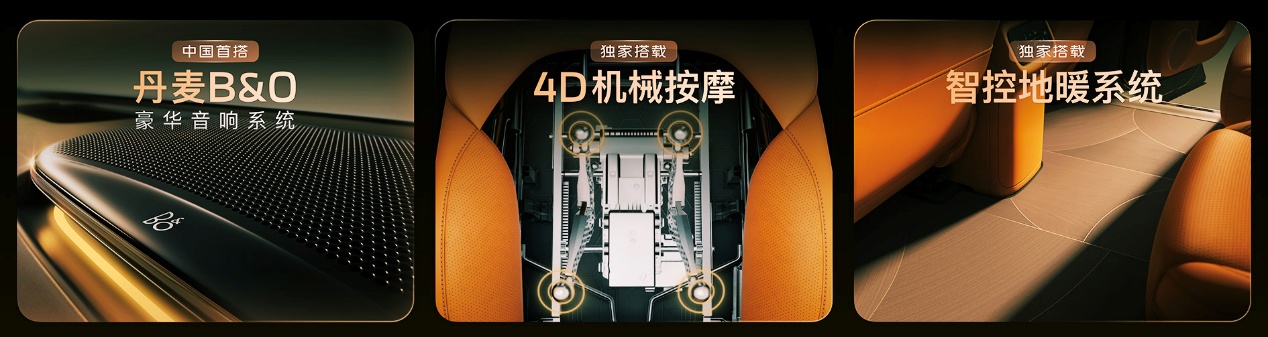 而真正让人感到“奢华感被重新定义”的,是智己LS8一次性拉满的“新奢华三件套”:中国首搭的百年豪华B&O音响,7.1.4声道、最多25扬声器、3472W峰值功率,整舱扬声器面罩采用真铝金属材质;独家4D车规级机械按摩座椅,复刻5种古法经络按摩手法;行业首创的智控地暖系统,采用铝质木纹地板和石墨烯均匀加热,冬天孩子光脚踩在车里也能从头暖到脚。这些在过去需要额外选装、动辄大几万的配置,在LS8上成了标配。