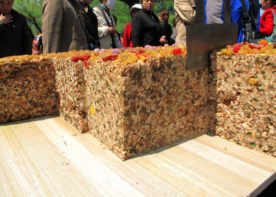 材料是肉眼可见的,一目了然。因此,在食用新疆切糕时,根本不用担心会出现假冒伪劣。毕竟,用眼就能看见。