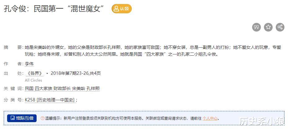 参考资料:[1]李伟.孔令俊:民国第一“混世魔女”[J].各界,2018,0(7):23-26