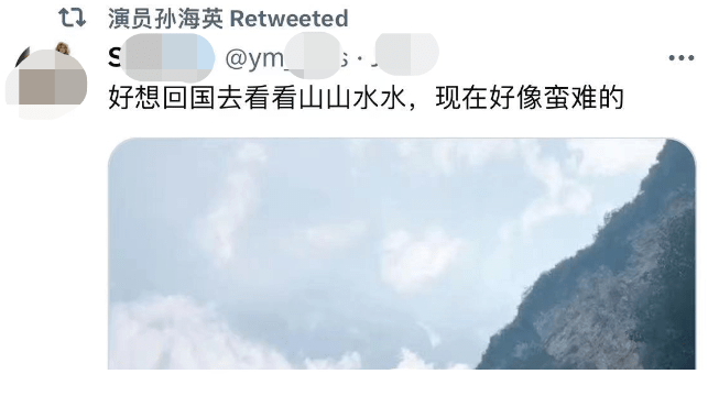 可不知是何种情形,触动了孙海英长久不用的“相思情”,让他在个人社交账号上发文说:“好想回国看看山山水水,现在好像蛮难的”。