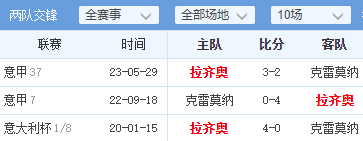 本场比赛更看好拉齐奥,历史交锋的巨大心理优势、强大的主场作战能力以及更稳固的防守,是他们的主要筹码。克雷莫纳近期在客场并非全无抵抗力,且拉齐奥阵容不整,这可能给克雷莫纳带来拿分的机会。