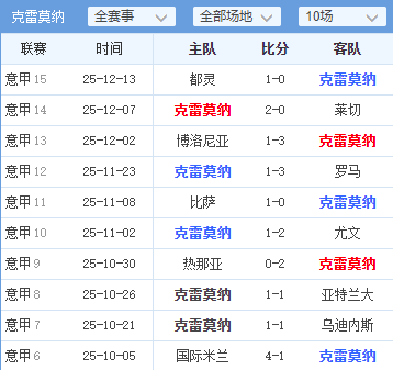 · 整体状态:近期表现不稳定,上一场刚刚失利。在最近的6个意甲客场比赛中输掉了3场。