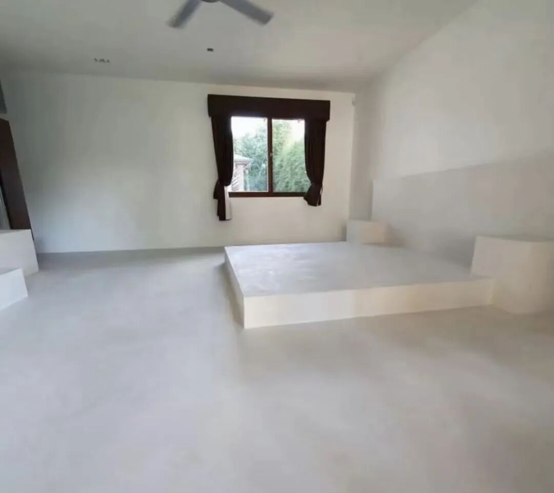 1.水泥砌的床和床头柜,主打一个耐用省钱,就是需要一身硬骨头才能配得上这么硬核的家具。