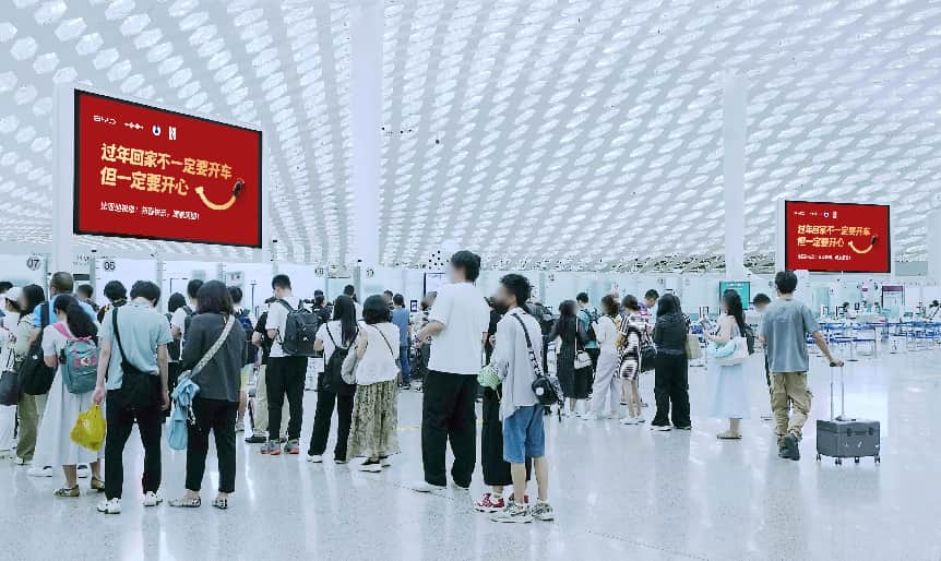 在机场这样情绪浓度极高的场景里,当人们拖着行李、带着疲惫与期待抬头看到这句祝福,那种“被理解”的感觉会被瞬间放大。它像是一句温柔的提醒:别太焦虑,别太较劲,年味不在里程数里,在笑声里。