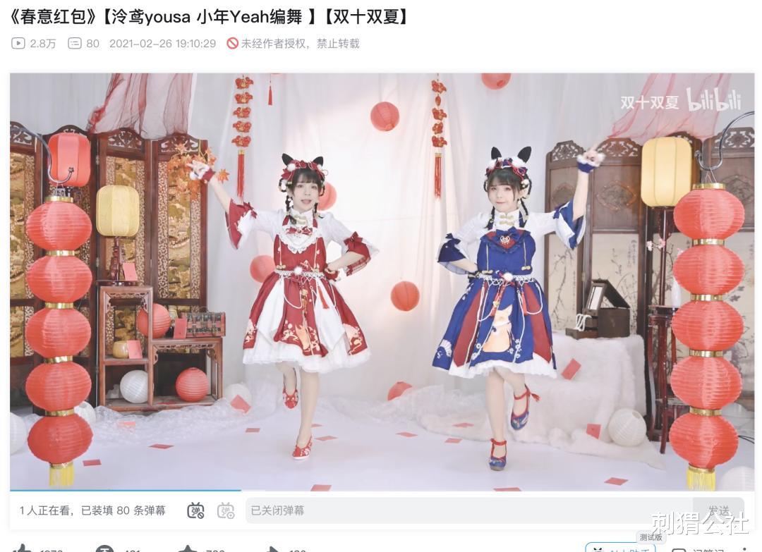 而年轻观众对这档节目青睐的原因,除了节目本身的养眼,还有另一个原因——《春意红包》由B站2017年拜年纪的曲目改编而来,这首歌原本由UP主泠鸢yousa创作,因其欢快的旋律、应景的填词,每当春节临近,B站站内就有大批UP主自来水二创《春意红包》拜年视频,这首歌一定程度成为B站标志性的春节文化符号之一。