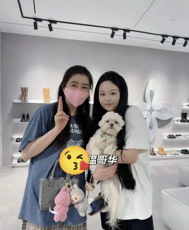 更让人觉得亲切的是,她手上挂着当下流行的 Labubu 拉布布挂件,怀里还抱着一只小狗,既有少女般的潮流敏感度,又藏着对生活的温柔热爱。