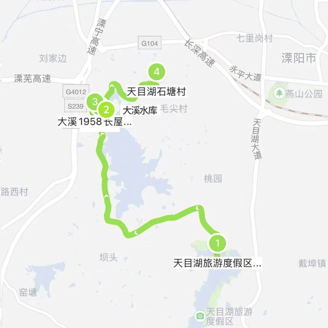 📍天目湖山水园——📍1958骑行驿站——📍大溪水库——📍石塘村——📍499通兑卷