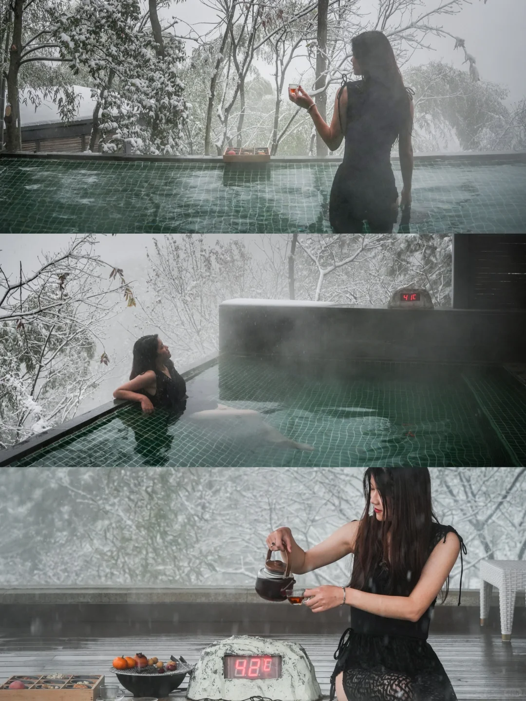暖汤与白雪相映;