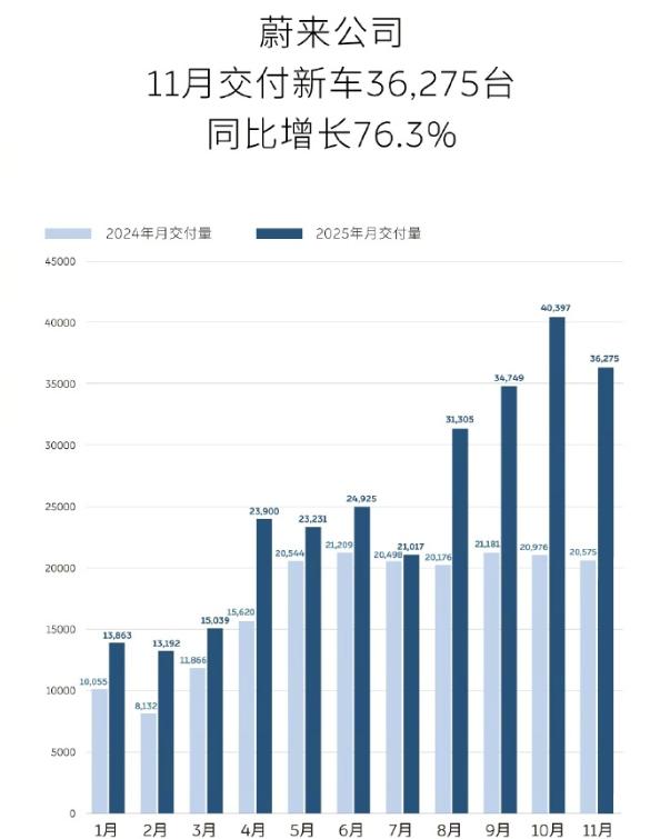 具体分析则三家略有差距,小鹏汽车11月交付36,728台,虽然销量同比依然增加19%,可惜这个增长数据已经略显平庸,后劲不足,绝对销量方面,相比巅峰月份则略有萎缩。