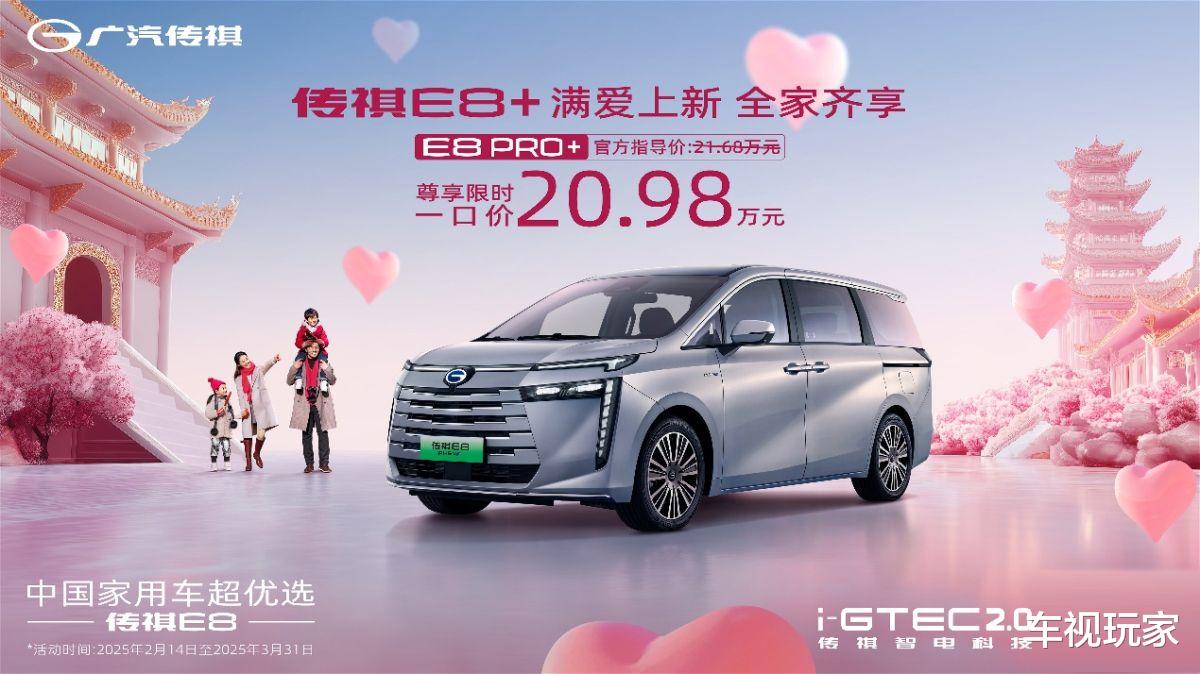 全新智电舒享大平层传祺E8 PRO+官方指导价21.68万元,为回馈消费者,在2025年3月31日前购车的用户可享“尊享限时一口价”,仅需20.98万元就能将车开回家。这一极具吸引力的价格政策,无疑为消费者送上一份实实在在的“幸福大礼”。