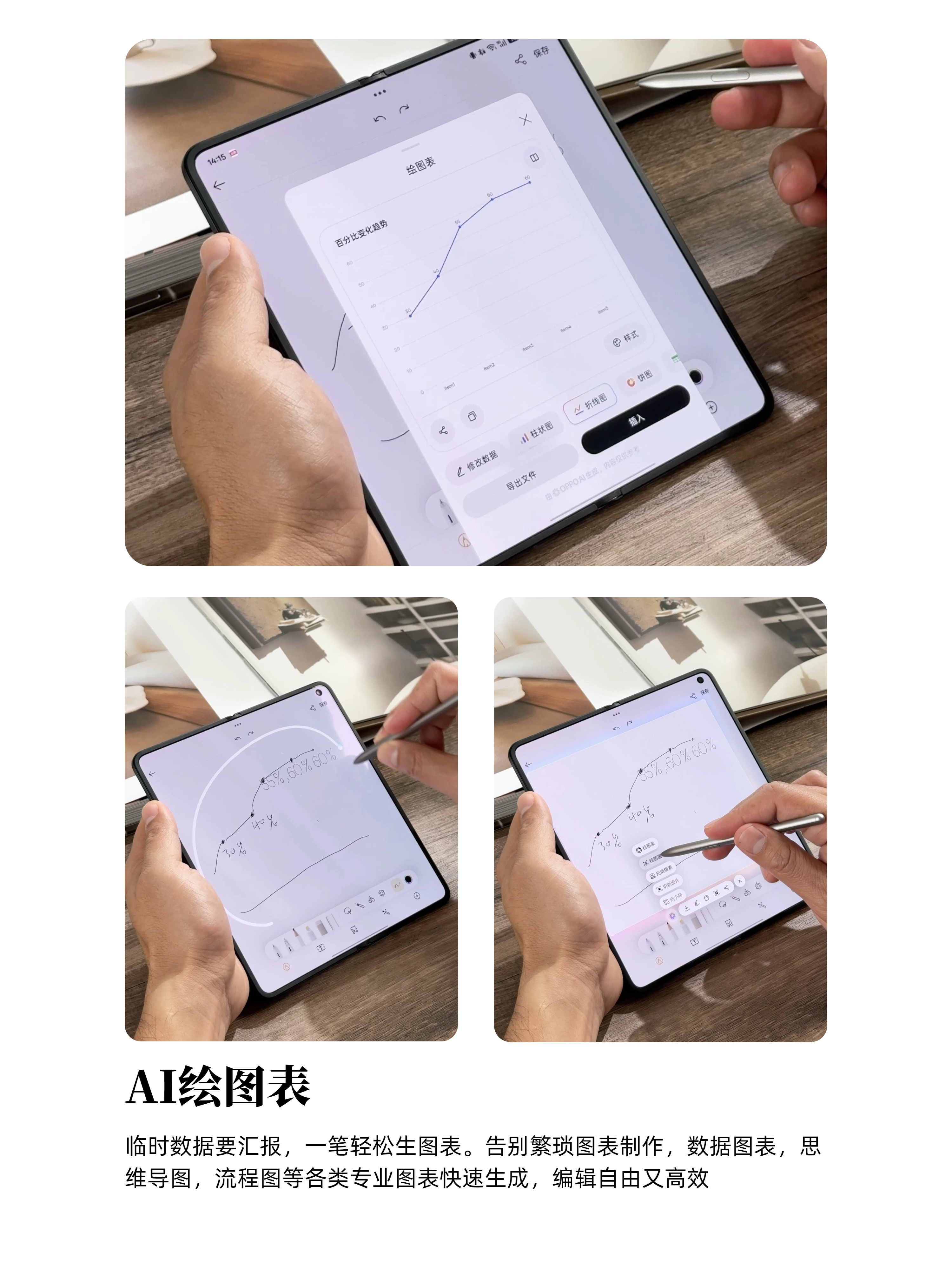 还有一次开线上会,我一边忙手头的事,OPPO Find N6放旁边随手记几个关键数据,然后用AI手写笔圈一下就直接给我生成了图表,脑图也超顺手,完全省了后面再整理的功夫。平时看文件、看书更是舒服,拿着笔随时批注,碎片时间也能高效用起来~