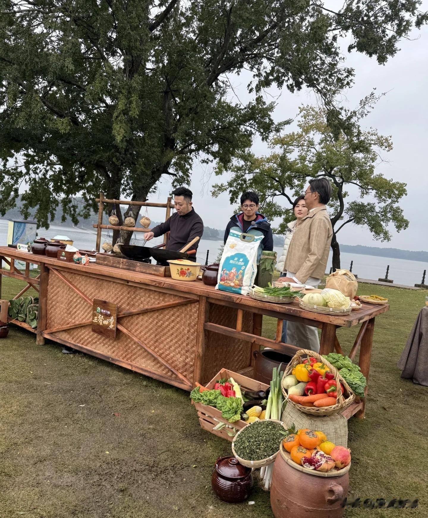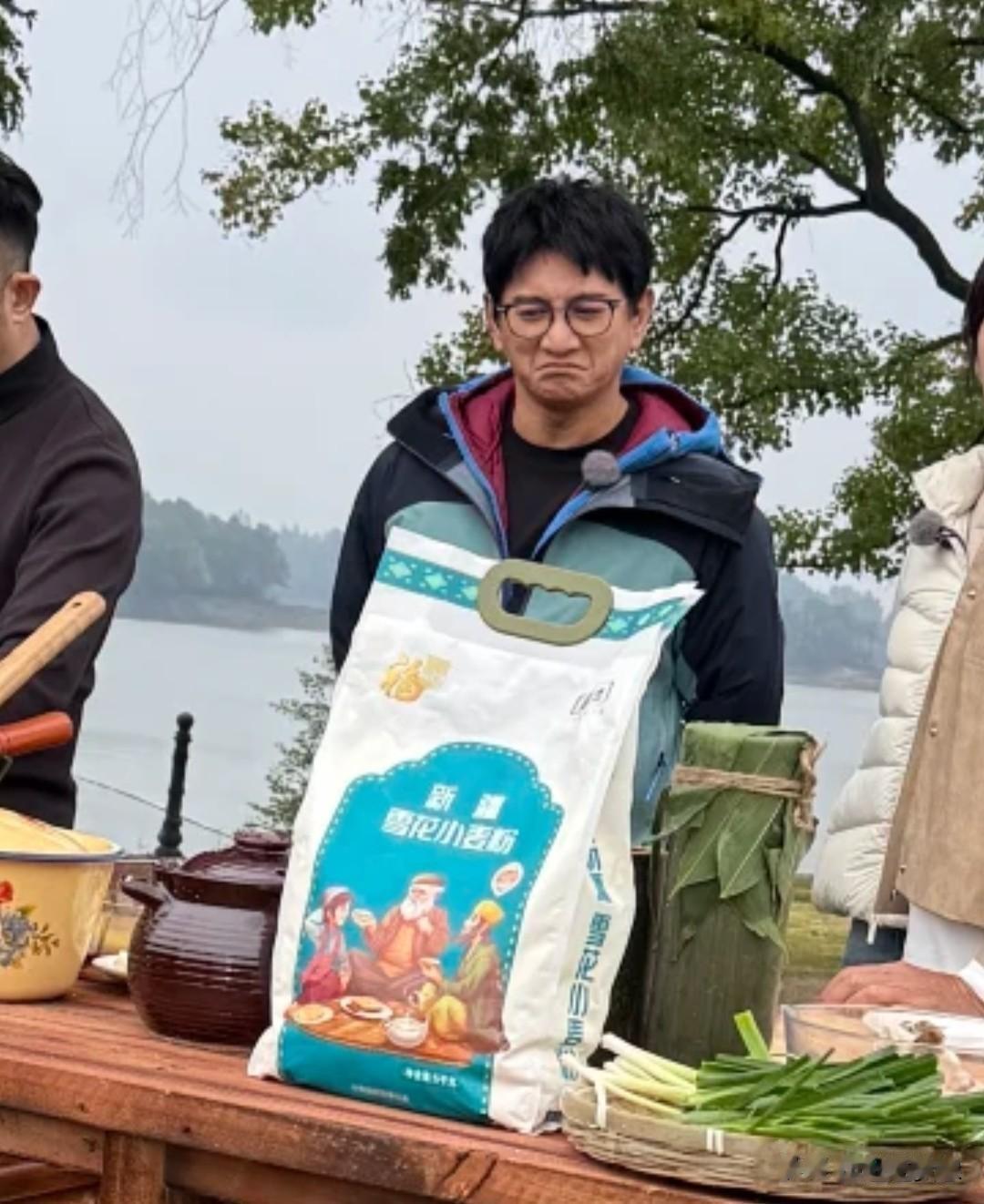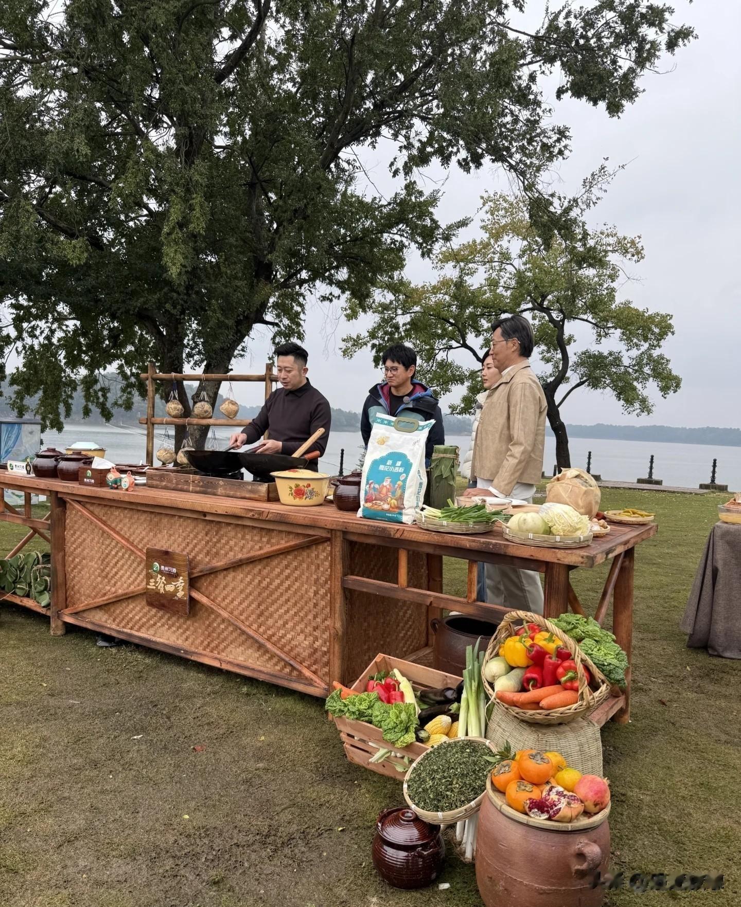 《三餐四季》节目组搭的海边布景,蓝色幕布被雨水打湿,边角耷拉着,像极了老家祠堂前褪色的蓝布。吴奇隆穿着件厚卫衣,袖口卷到小臂,露出的手腕上,旧表的表盘蒙着层薄灰,倒比直播间里那些锃亮的手表更有温度。他站在灶台前,左手扶着锅柄,右手拿着铲子,侧脸的轮廓在暖黄的灯光下泛着柔光——54岁的人,从侧面看真像45岁,这哪里是"冻龄",分明是把日子熬成了慢火汤。