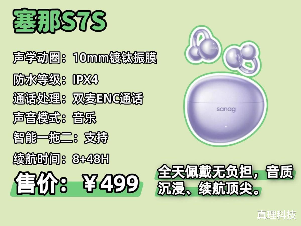 塞那 S7S 这耳机,音质不算差,10mm 动圈配全景音增强,听着有感觉,人声和背景音不混。超低频补偿挺实在,低音够劲还不闷,不盖过人声,听着舒服。