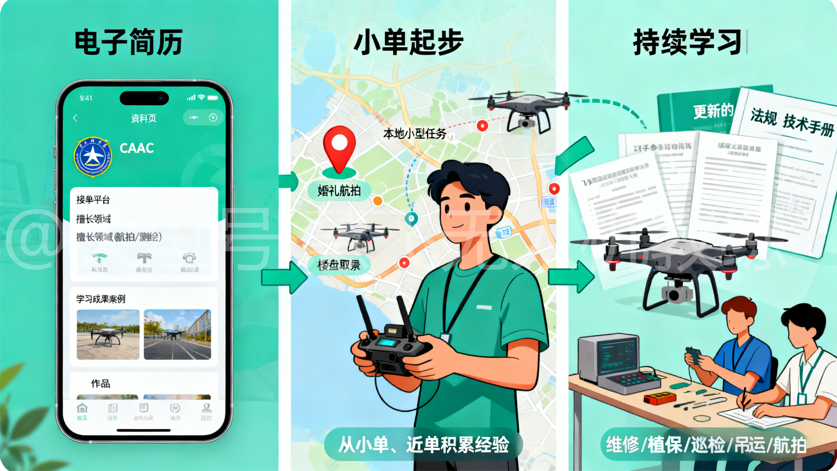 准备一份专业的“电子简历”:在各类接单平台上,完善你的资料,突出展示你的CAAC执照信息、擅长领域和以往的成功作品案例(如果是首次,可以展示学习期间的成果)。