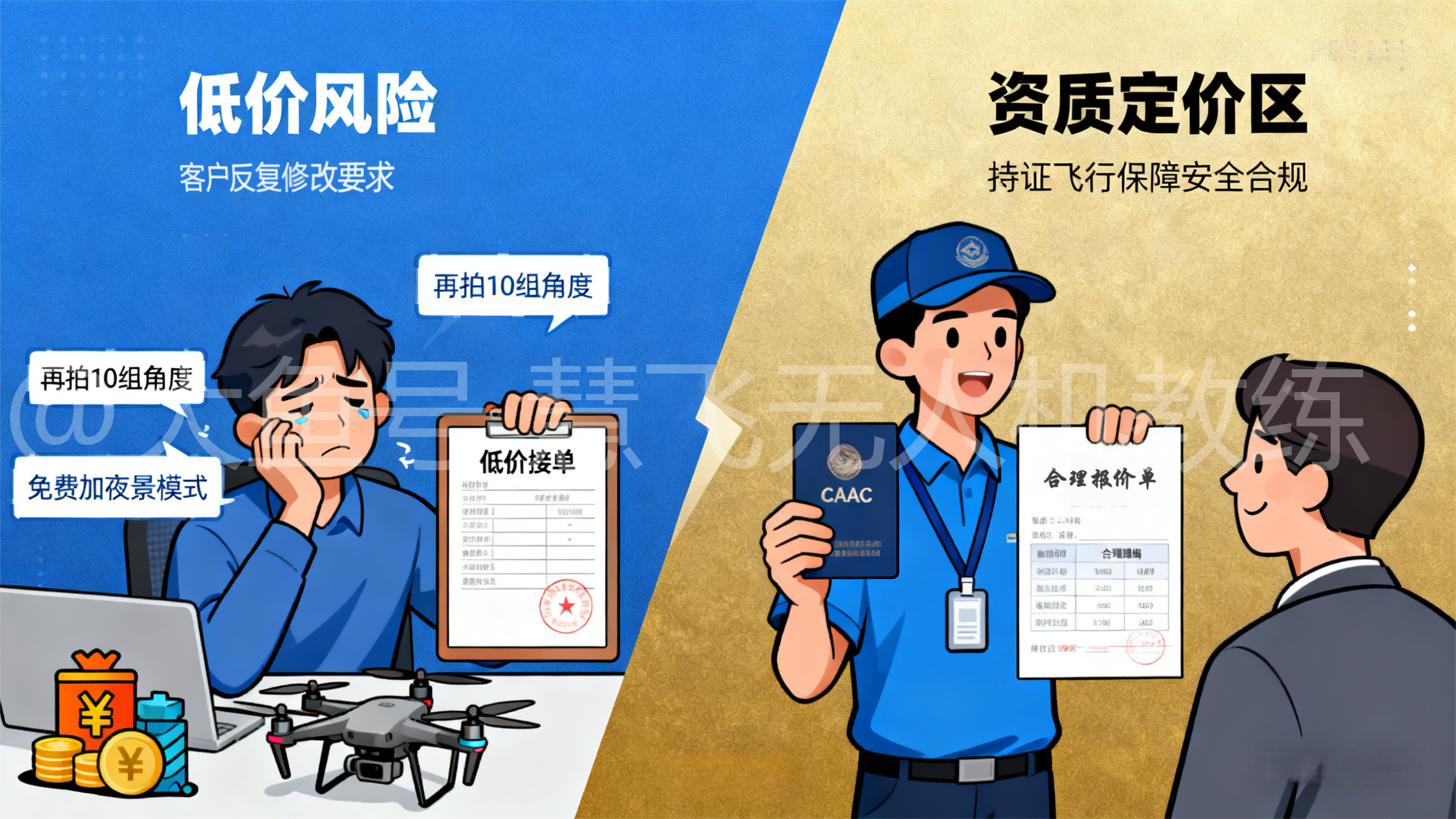 注意:亮出你的CAAC执照,解释持证飞行的安全与合规价值,制定合理报价。