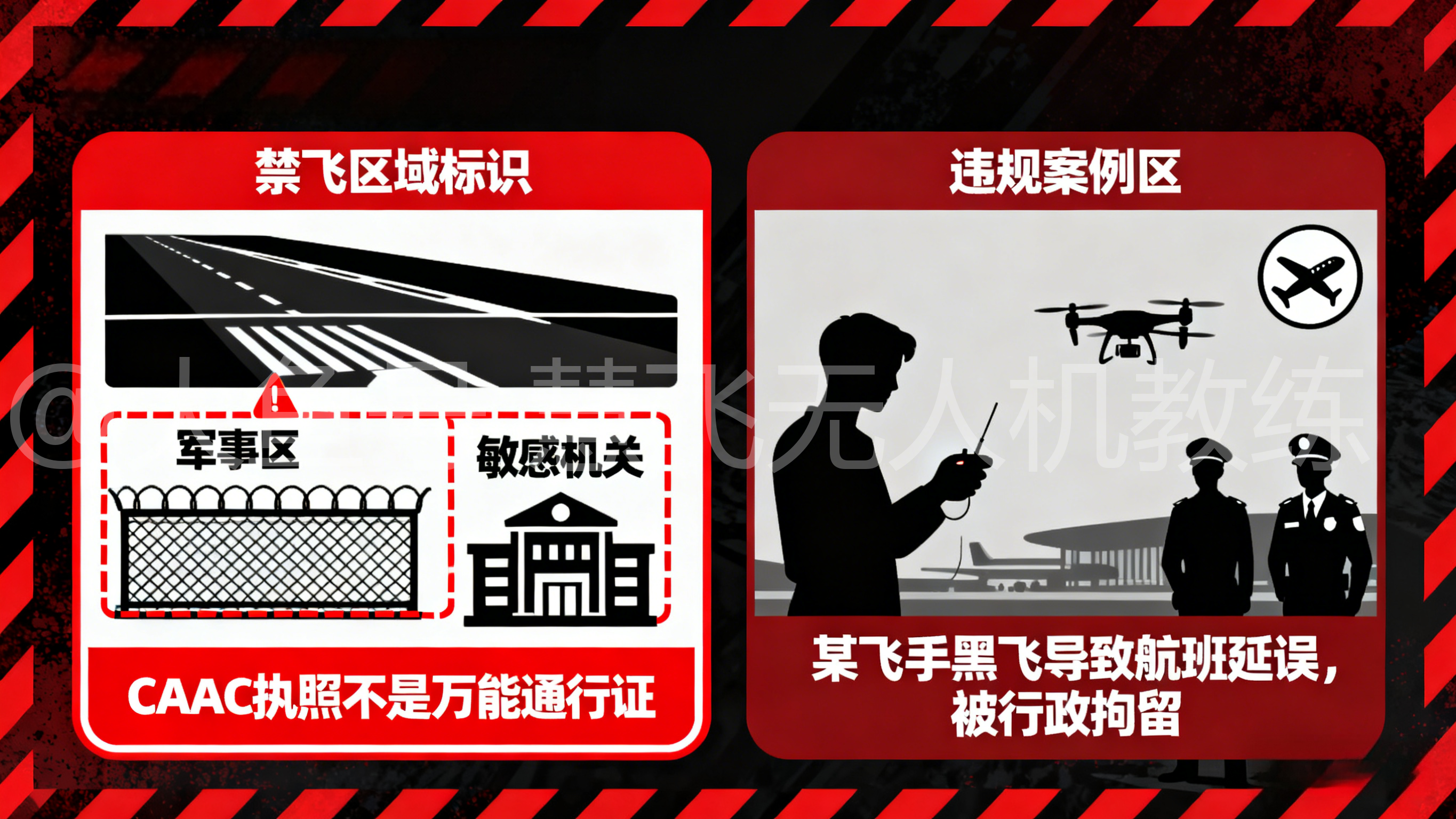 案例:某飞手在机场附近“黑飞”,导致航班延误,最终被行政拘留。