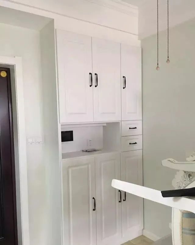 没有独立的入户过道,我们巧妙地在门右侧设计了上下两层的玄关鞋柜。这不仅提供了充足的储物空间,中间留空的位置还方便放置钥匙、手机等小物件。每当回家,都能立刻感受到家的温馨与便利。