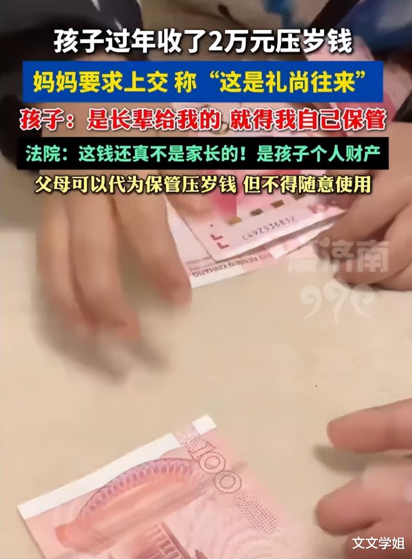 每年春节过后,压岁钱归谁都会成为无数家庭的矛盾焦点。在很多父母的观念里,孩子收到的红包,不过是大人之间的人情往来,父母替孩子保管、支配、甚至使用,都是天经地义。可最近一则真实案例,却颠覆了大家的传统认知:一名孩子因不愿上交 2 万元压岁钱,与父母争执不下,最终闹到法院。而法院的判决,给所有家长上了一堂深刻的法治与教育课。