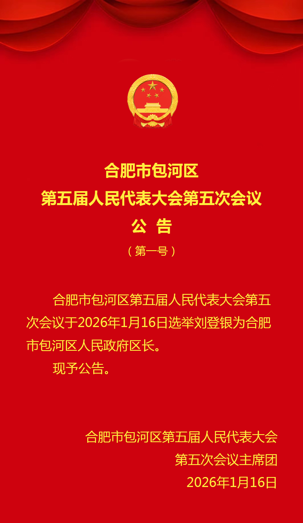 合肥市包河区第五届人民代表大会第五次会议于2026年1月16日选举刘登银为合肥市包河区人民政府区长。