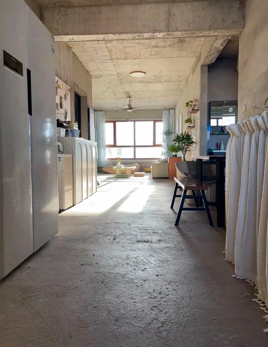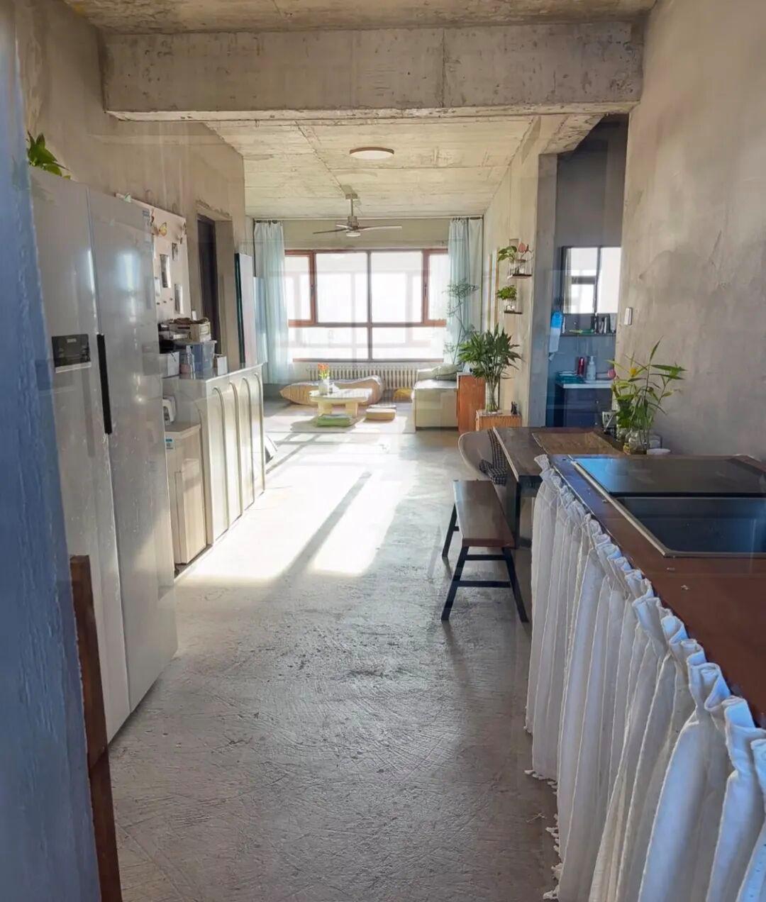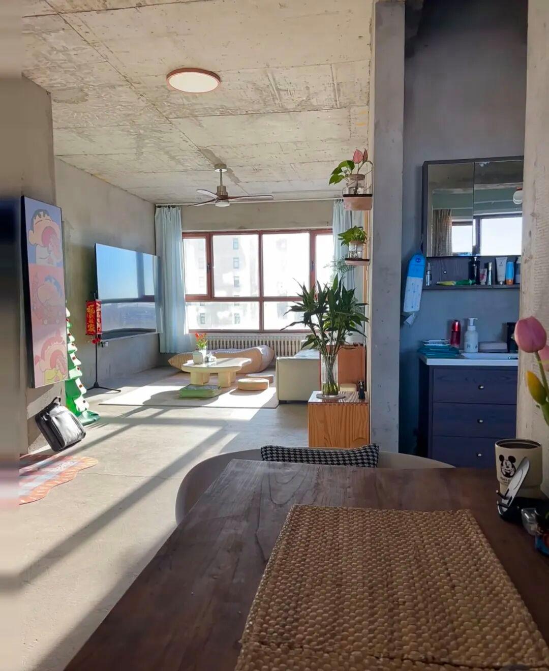 这个毛坯房的硬砖真的很简单,水泥地不贴砖,天花板不做吊顶,家具基本是从二手市场淘回来,稍微拾掇,也很有烟火气。