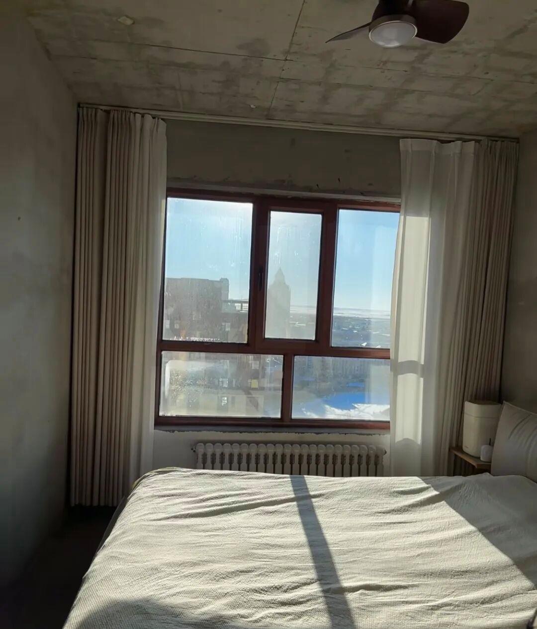 从天花板里藏着的吸顶灯,再到窗户分割光影的边框,悄悄划分出不同的功能区,一点不杂乱,还特显格调。而刚入的时候,这个毛坯房真的用惨不忍睹来形容,清除大件建筑垃圾,吸附墙面地面灰尘,这两件事情,就足足博主花了2周的时间;