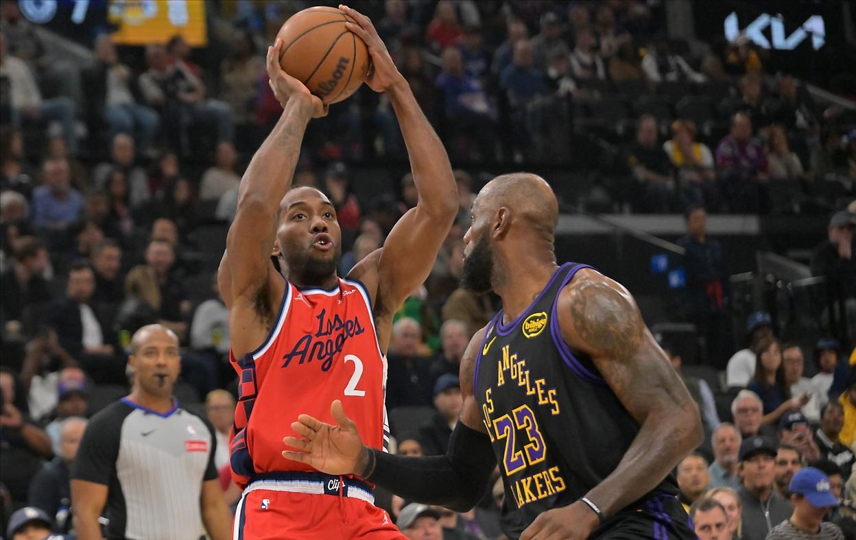 因左膝挫伤和休战三场的科怀-莱昂纳德,选择在快船与湖人的洛杉矶德比大战中复出。紫金军团真可谓是华佗队,球星在对阵他们的比