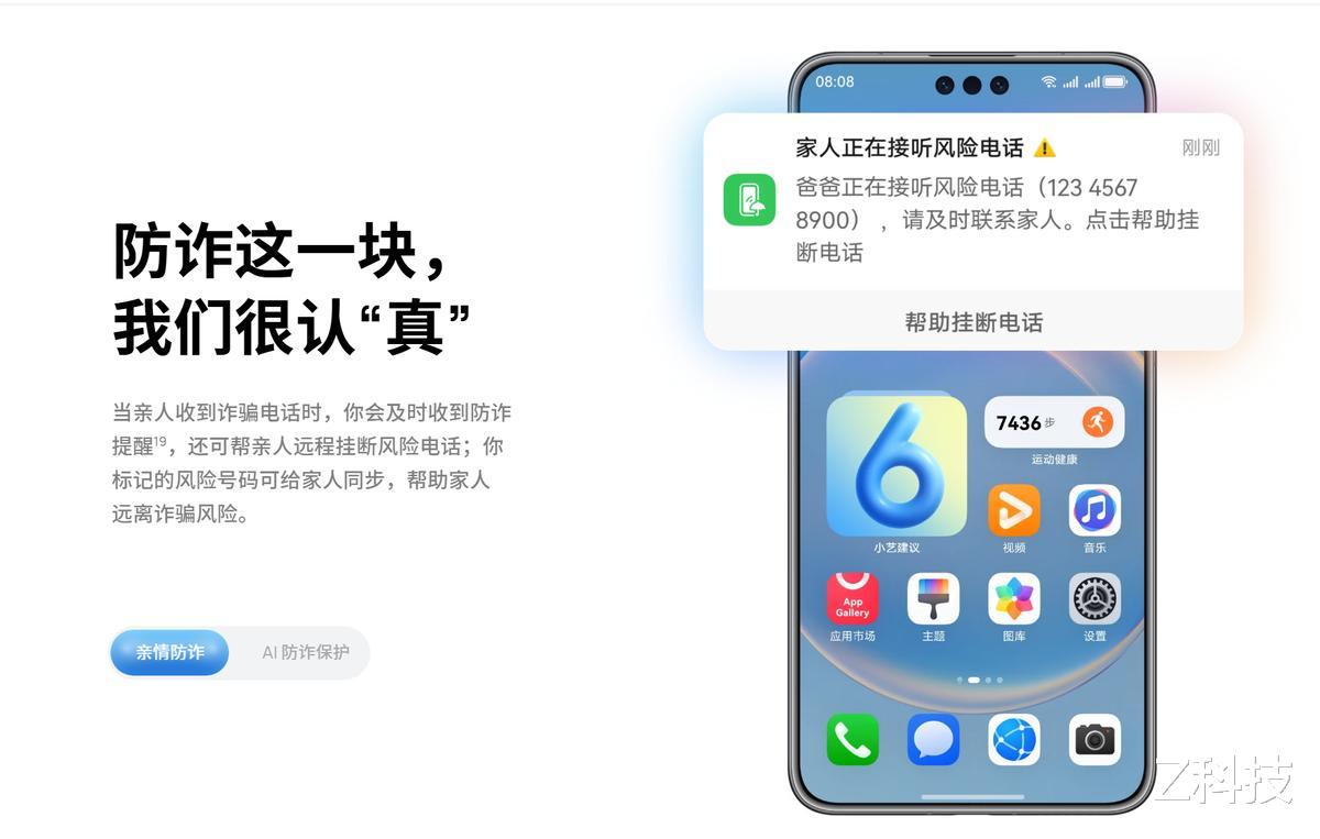 更关键的是,HarmonyOS 6 让它有了“关心人”的能力。年底诈骗高发,红包链接、网购退款、假冒客服套路频出,AI 防诈能主动识别“刷单返利”“快递理赔”“冒充公检法”等高危话术,陌生来电即时弹窗预警,提醒用户勿轻信。在此基础上,亲情防诈功能进一步延伸守护范围——将父母或长辈的手机加入家庭守护后,一旦他们接到可疑电话,你的nova Flip S会立刻收到通知,并支持远程挂断、一键拉黑。自用安心,送长辈更是省心,真正解决“自己防骗累、家人防诈难”的痛点。