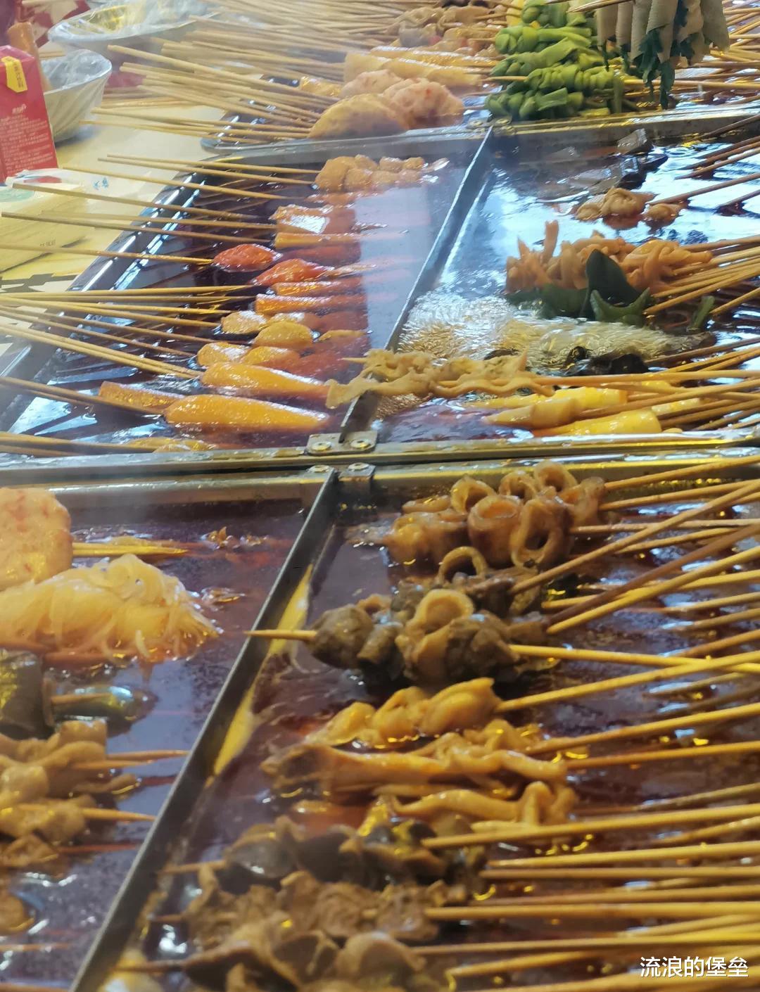 14、麻辣串,东北人的夜宵除了烧烤就是麻辣串了,麻麻辣辣的半夜也能吃老多了,喜欢吃里面的菜卷,蘸上自己喜欢的蘸料!