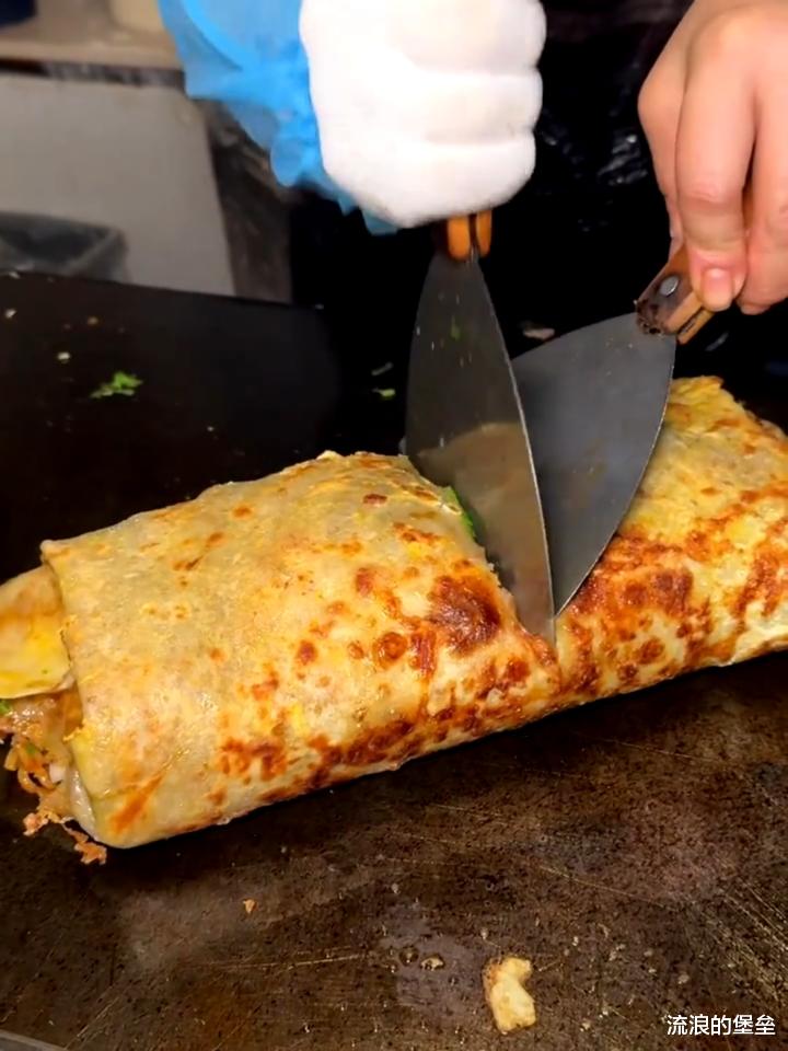 9、鸡蛋灌饼和土豆丝卷饼,早中晚餐怎么吃都可以,尤其是喜欢吃土豆丝卷饼,里面还加很多小食品,辣条和炸串半成品,简直不要太爱!