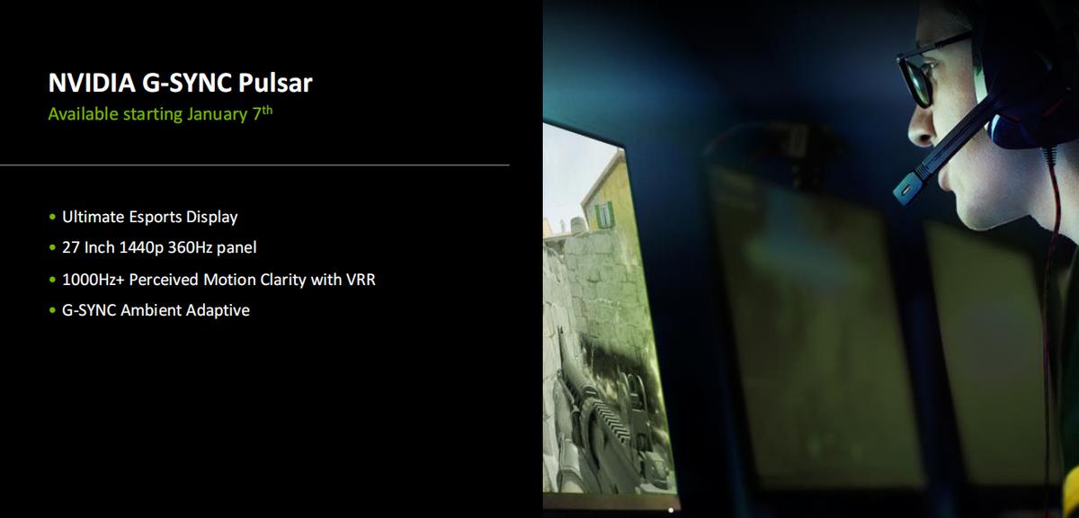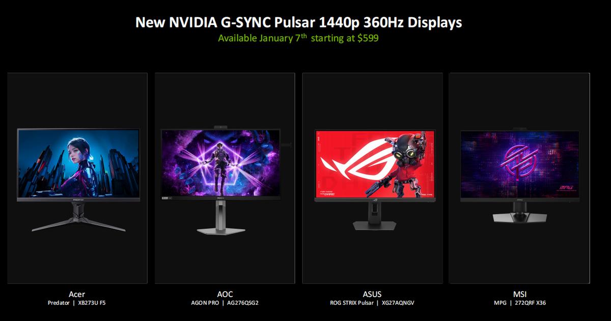 首批支持G-SYNC Pulsar的1440P/360Hz电竞显示器将在一月七日起售,价格是599美元起。