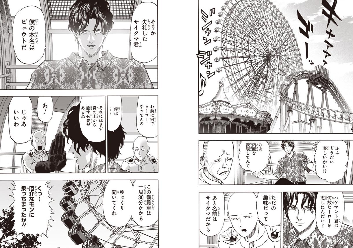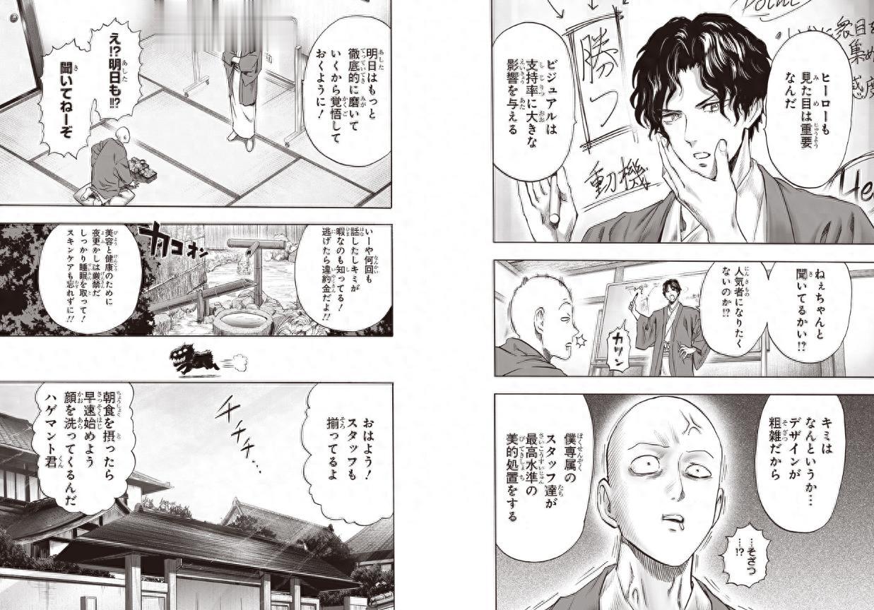一开始还是甜心假面和埼玉之间的交谈,甜心假面打算重新塑造埼玉,完全不在乎埼玉的感受,只是想要把埼玉打造成自己理想中的未来的明日之星。