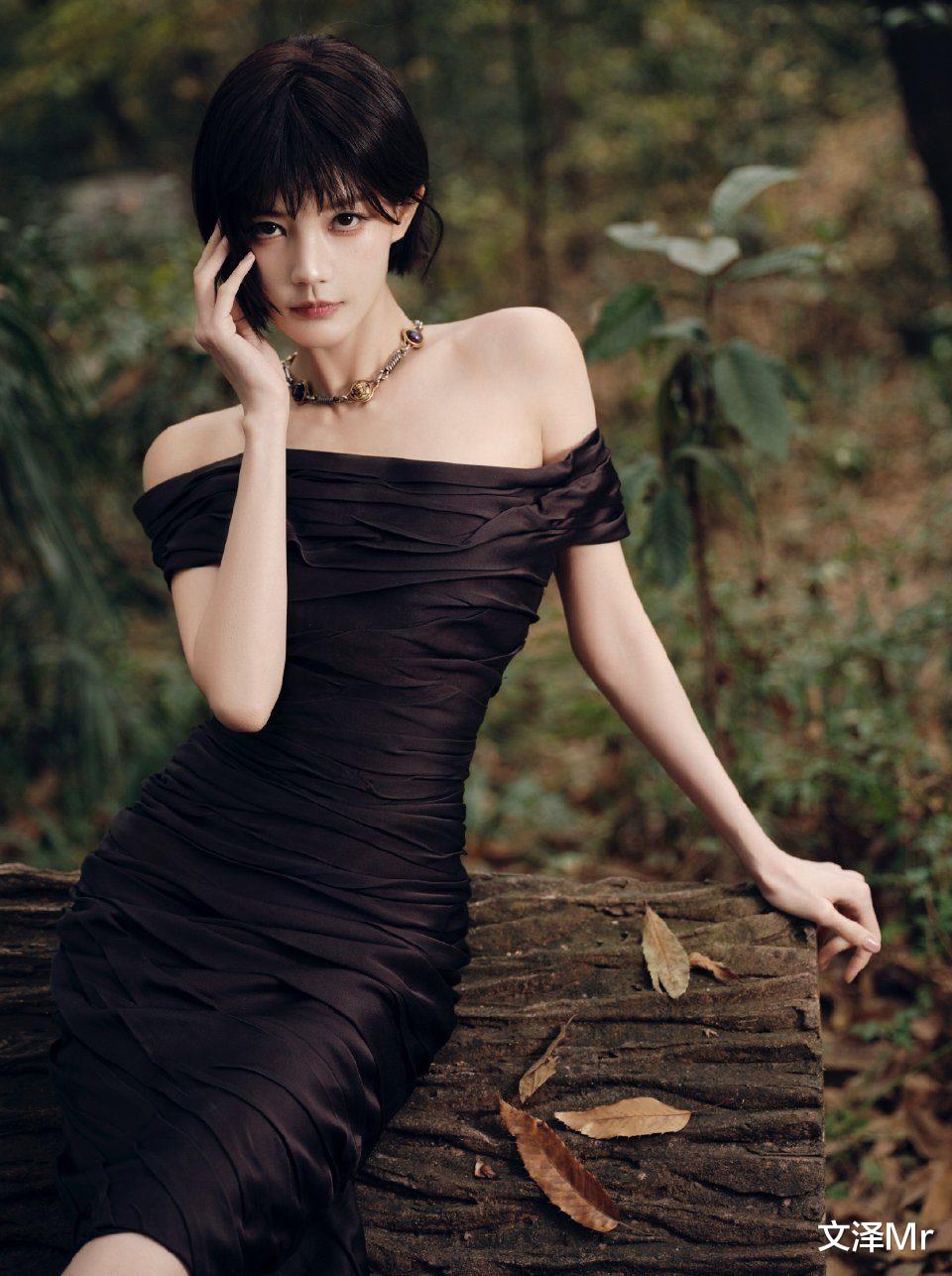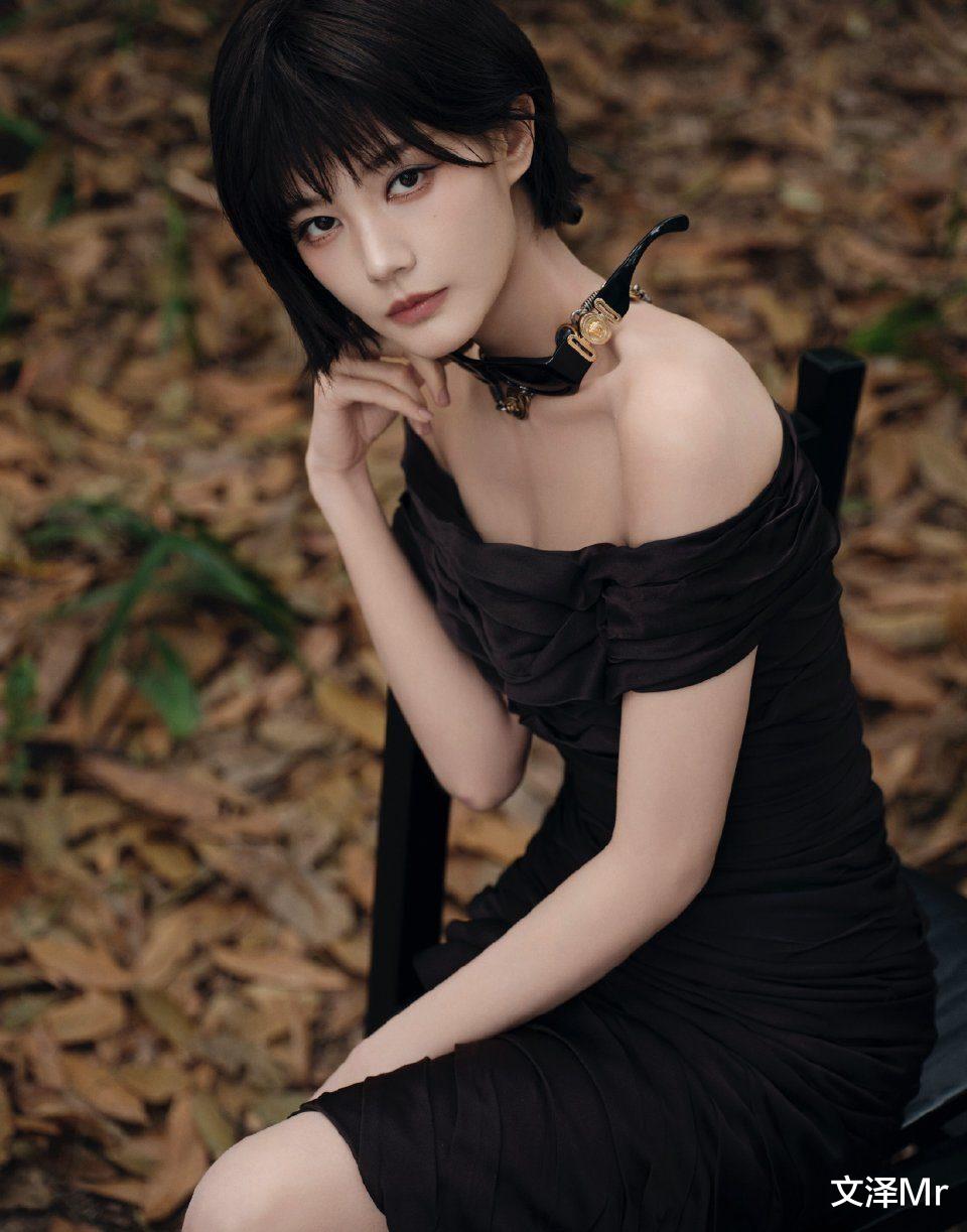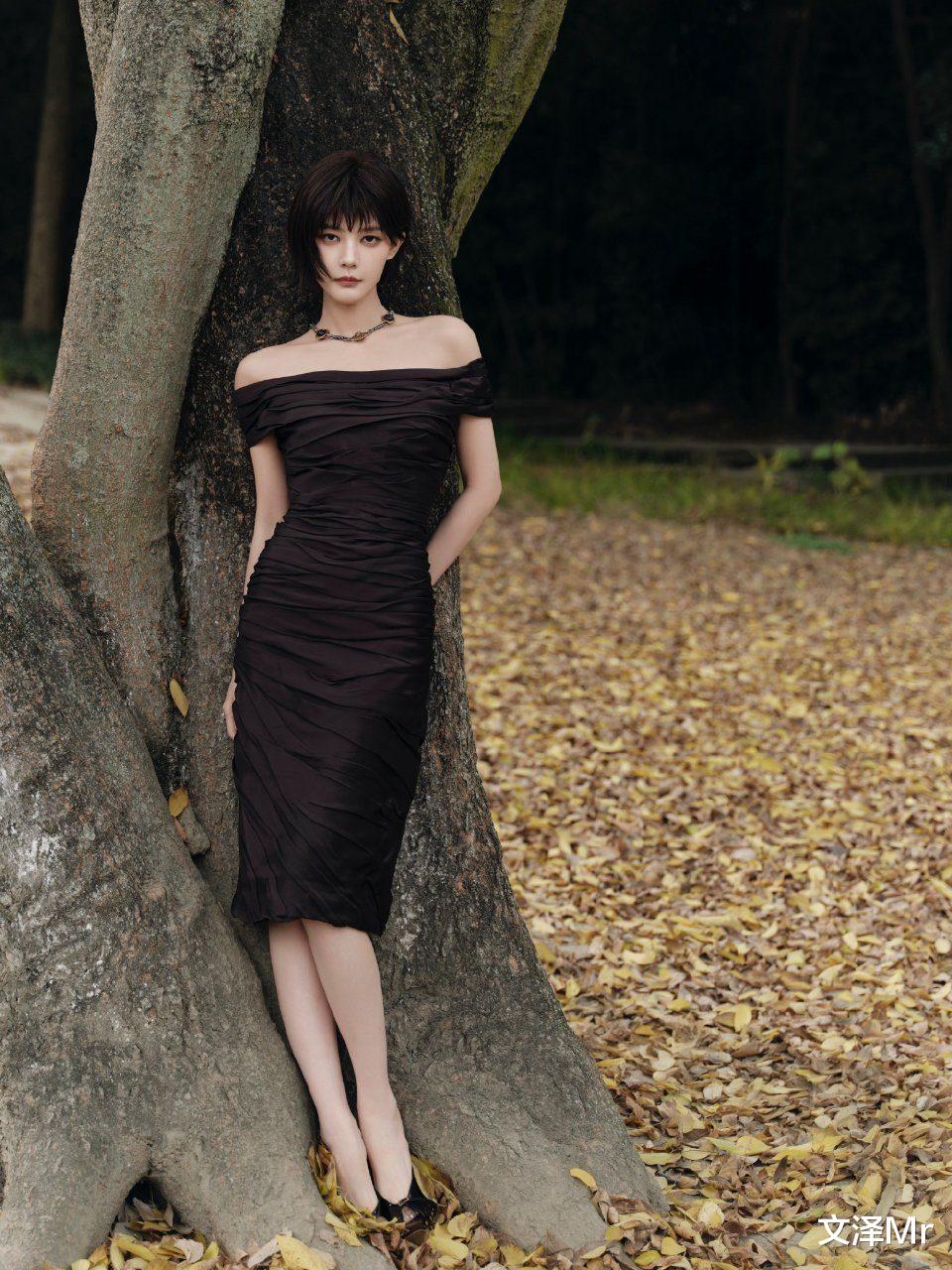 秋意渐浓,落叶铺陈的林间,她静静地坐在那里——黑色的露肩连衣裙,利落的短发,一抹金色的项链点缀颈间。这或许就是李一桐最吸引人的地方:她不必刻意张扬,就能成为画面的焦点。作为近年来备受瞩目的90后小花,李一桐用她独特的时尚感知力,在聚光灯下讲述着属于自己的风格故事。