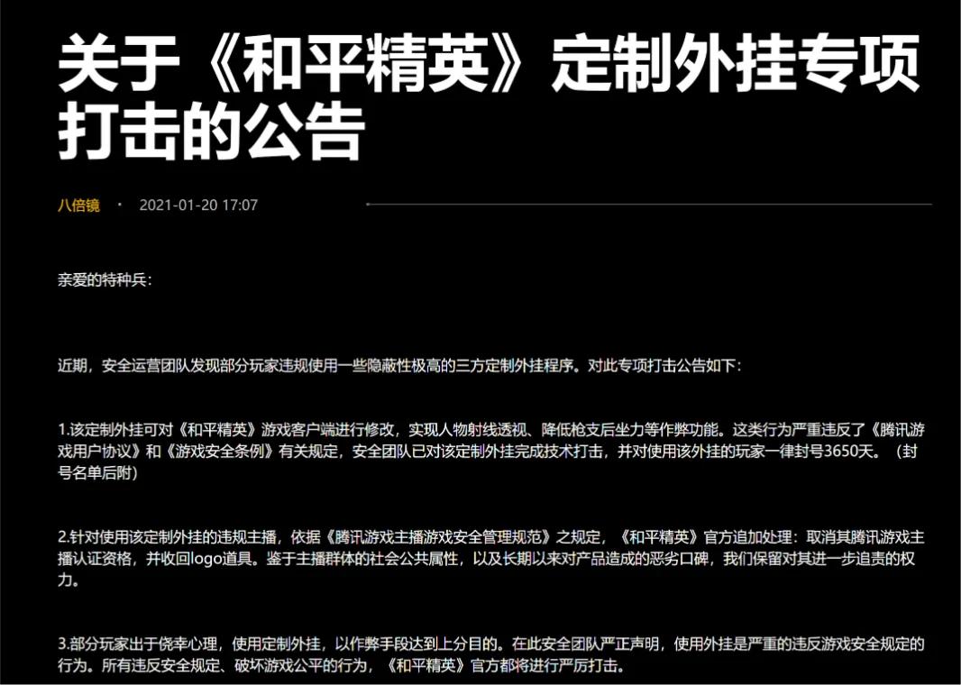这种共治模式的核心逻辑很清晰:游戏官方先守好游戏内的公平,打击开挂等违规行为;然后联手内容平台,阻断开挂主播的小号复播通道,同时呼吁更多的平台参与进来,共同净化游戏环境和直播环境。这种既要治标,也要治本的思路,就和《和平精英》联动警方,从外挂源头打击整条产业链是一样的。