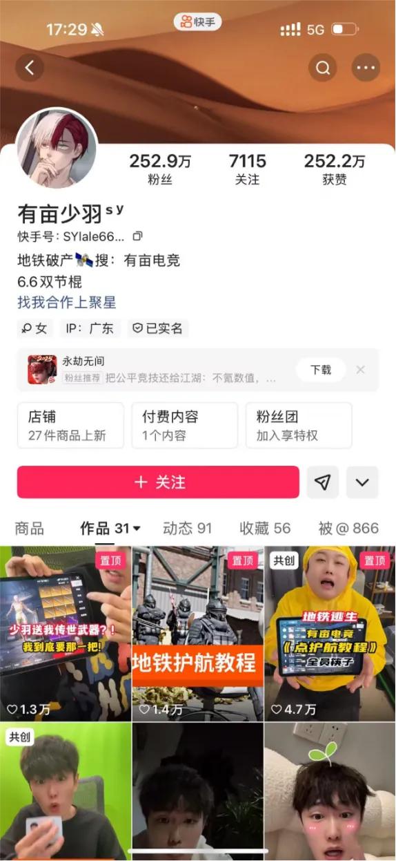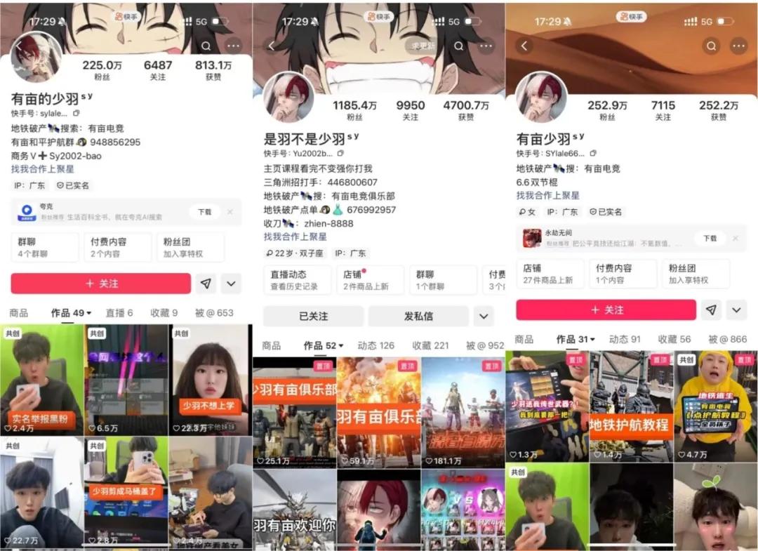 从少羽屡次被封、屡次转生复活,且迅速涨粉的现象可以看出,他聚拢用户的能力极强。单从流量上讲,这种头部主播,无论对《和平精英》还是快手来说,都有不小的商业价值。