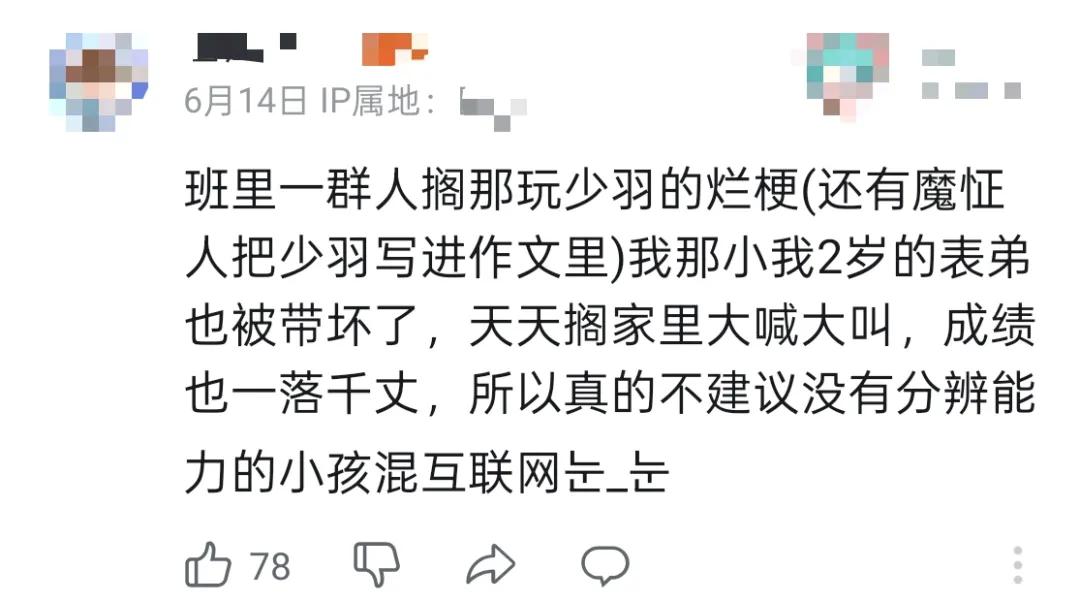 因长期传播低俗内容,煽动青少年不良行为,今年6月,少羽再次被平台封禁。