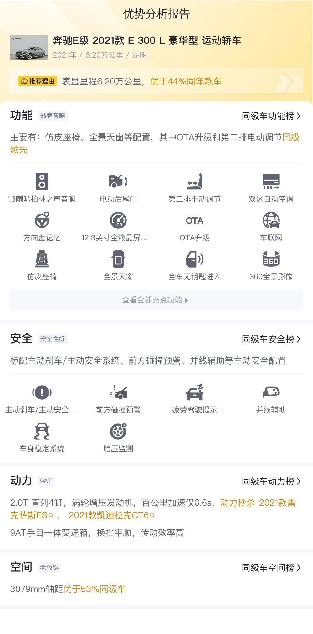 先让我们来了解一下这辆二手奔驰E级的基本情况,该车具体版本是奔驰E级 2021款 E 300 L 豪华型 运动轿车,上牌日期是2021年2月,来自昆明,上牌地也是昆明,表显里程是6.2万公里,该车有1次过户记录,新车指导价是49.78万,目前二手车报价是31.8万。