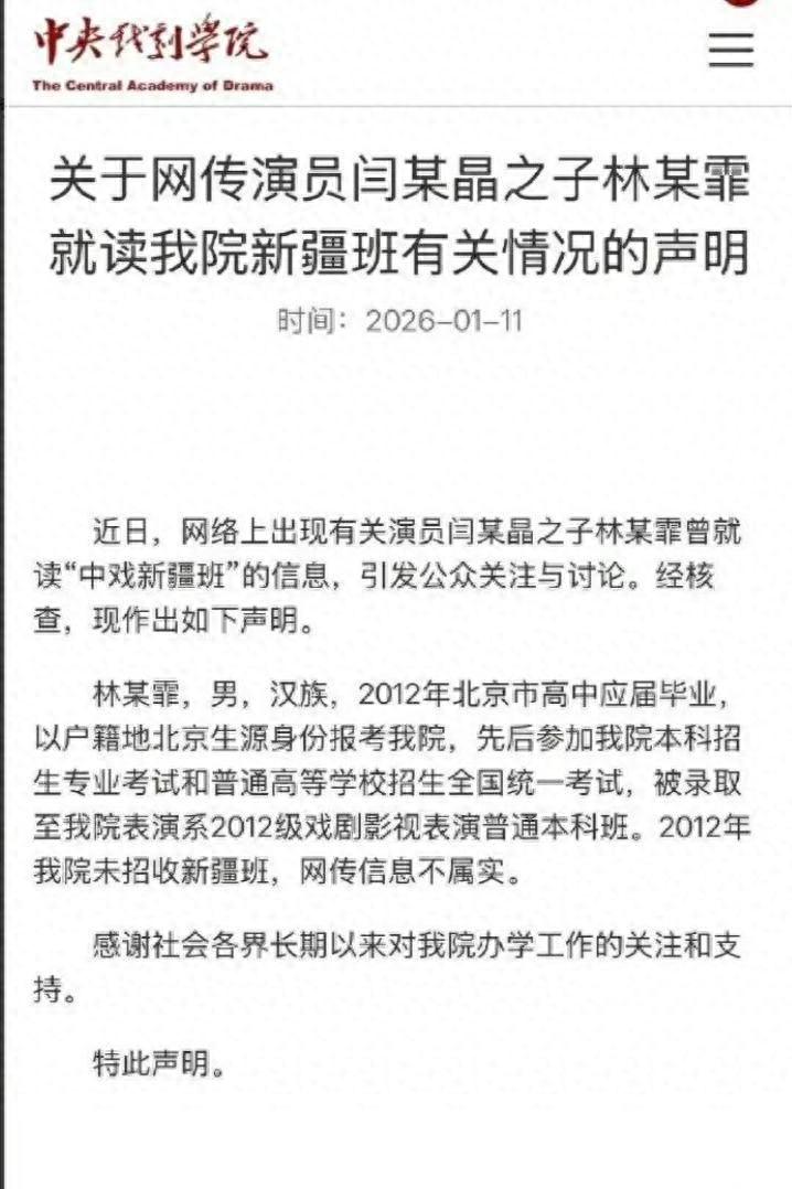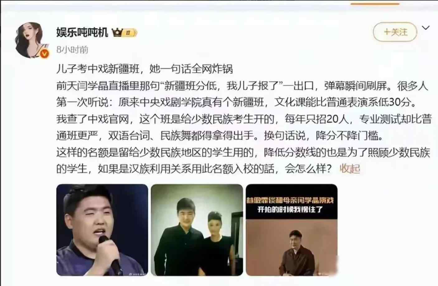 随后有人翻出她儿子当年考中戏的事情,指出他走的是新疆班的捷径,中戏随即回应,表示林某霏是北京户口,按普通学生录取,成绩没有问题,但学校没有公布具体分数,这让更多人起了疑心,不论事情真假,公众对教育公平问题向来敏感,尤其是牵涉到有背景的家庭时,质疑的声音自然更加响亮。